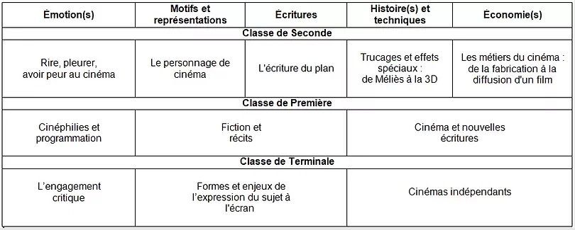 L’enseignement hebdomadaire est de 3 heures et permet de présenter une épreuve facultative au Baccalauréat où les élèves présentent et commentent un court métrage conçu et réalisé en petit groupe durant l’année.